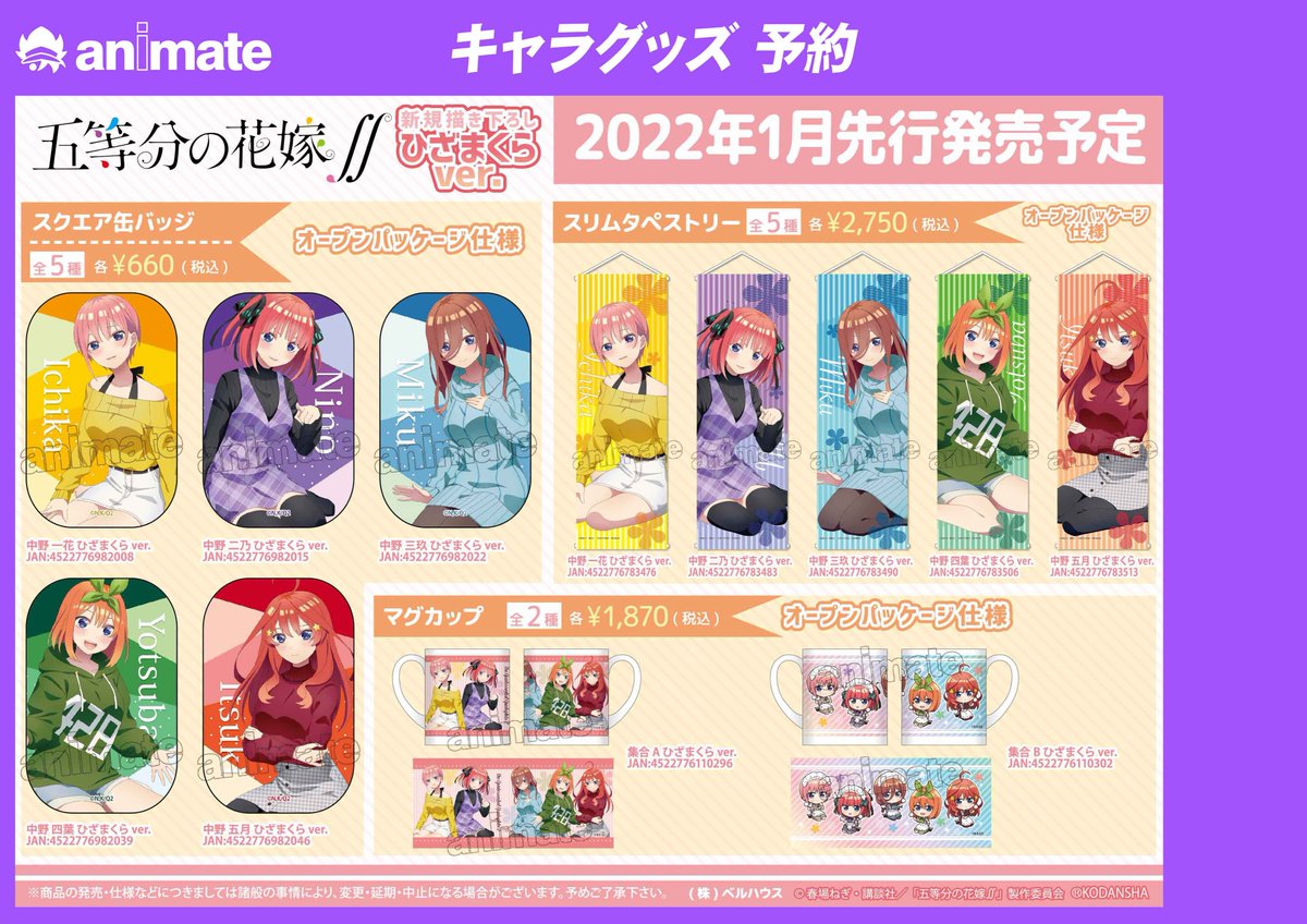 ベルハウスからTVアニメ『五等分の花嫁∬』新規描きおろし「ひざまくらver.」のグッズが登場です!