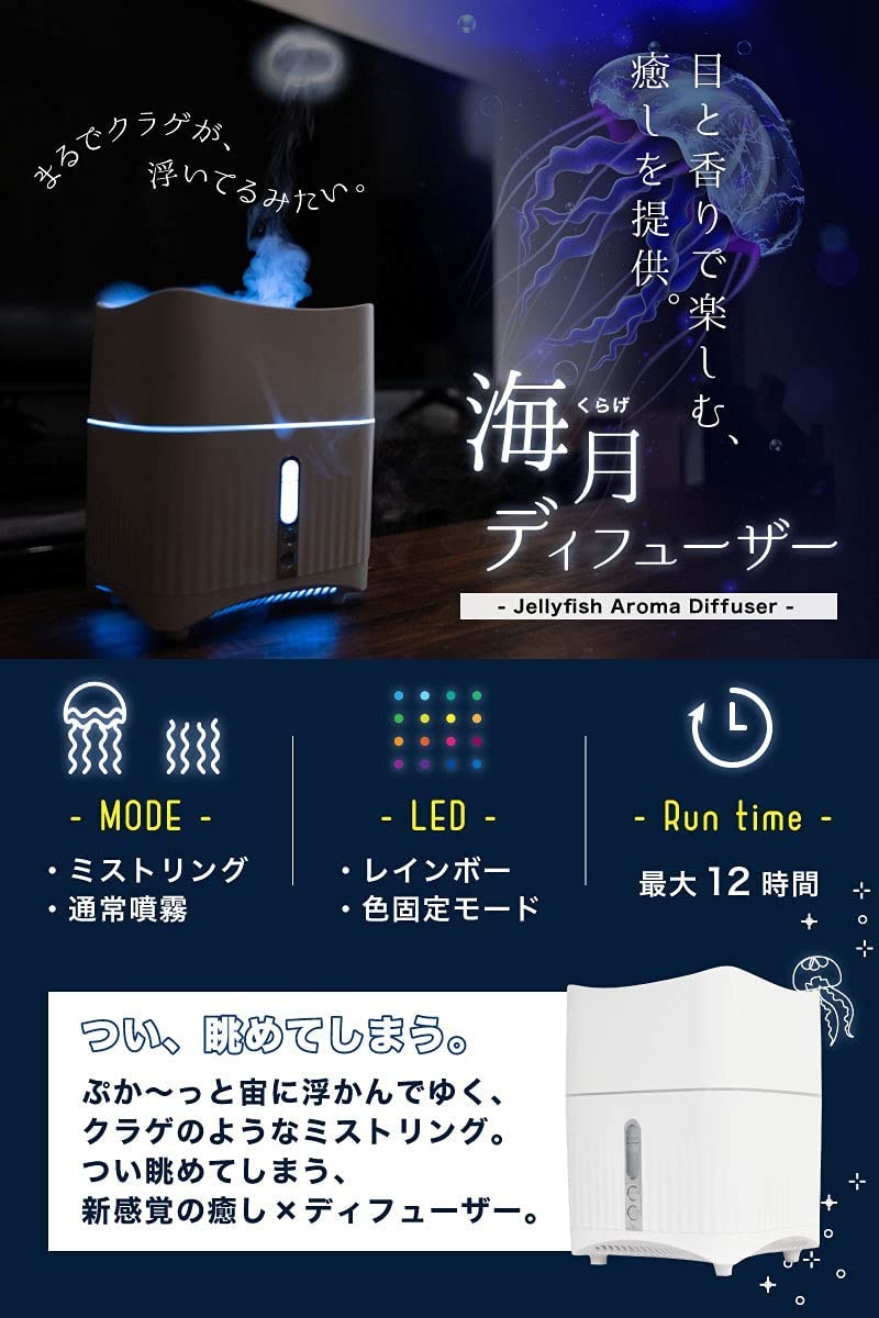 くらげがゆらゆら浮かんでいるような不思議なミストリングに癒される♪「海月ディフューザー」発売中!購入⇒amzn.to/3tr5Uzp