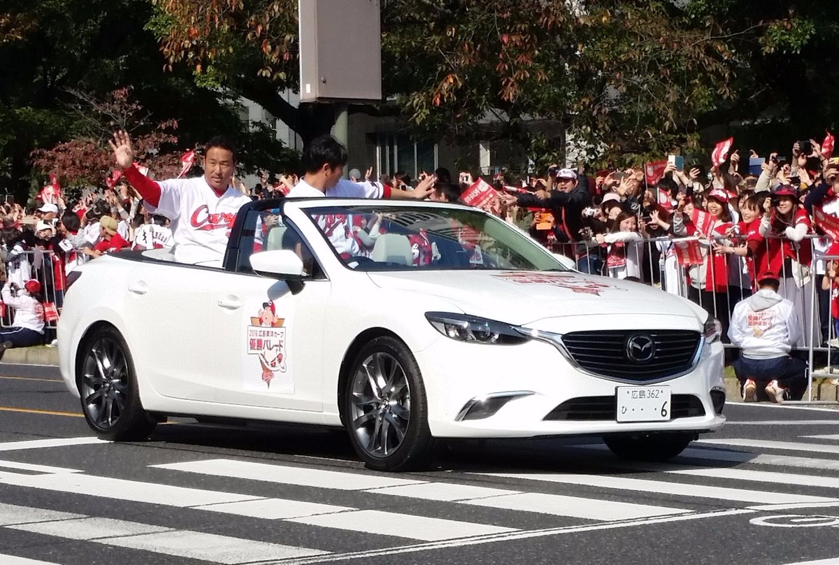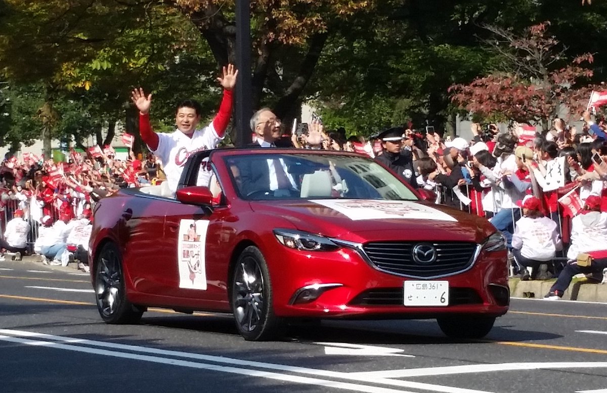 カープの優勝パレードの参加人数は31万3千人(主催者発表)となりました。41年前と似た数字を出しました。緒方監督も両手を振って、歓声に応じていました。松田オーナーと同乗しました。 #carp