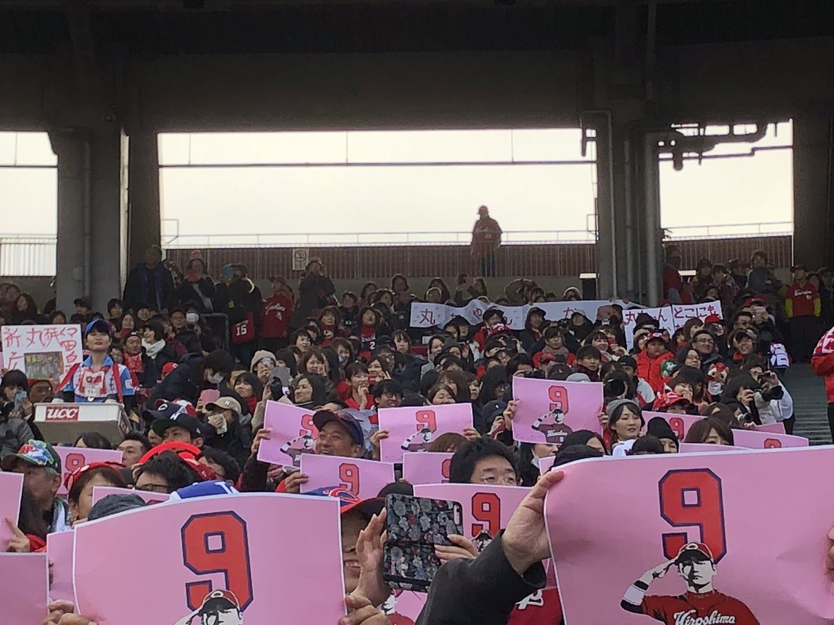 ファン感謝イベントに丸選手が登場すると写真のような光景がスタンドにひろがりました。