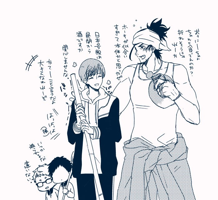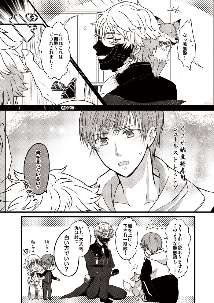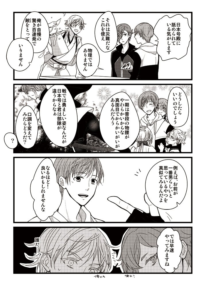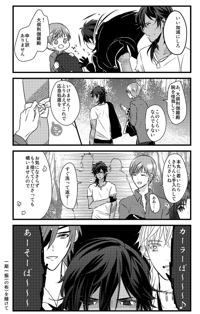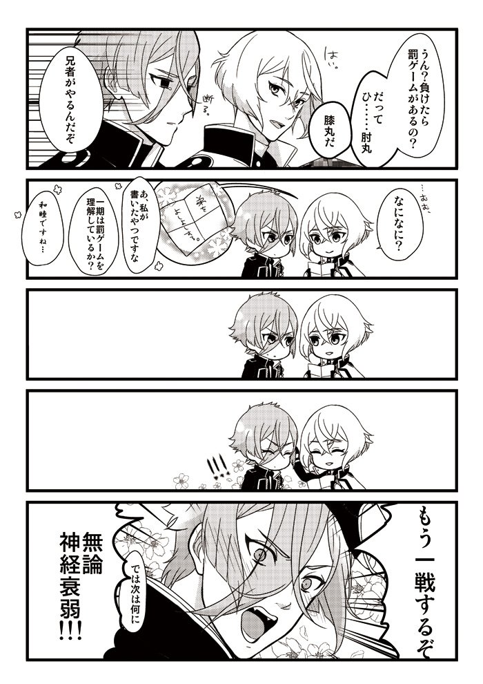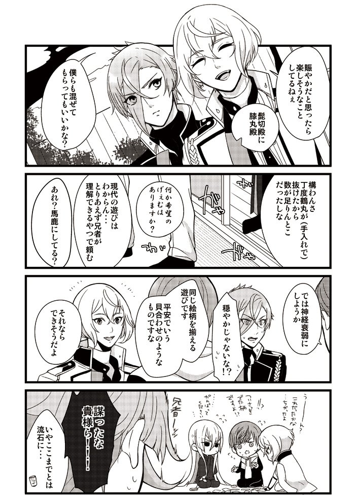 兄者極祝いということで、初期レア4組コピー本の再録です。(兄者楽しみすぎてお腹痛い!)レア4太刀が蚊に刺された時の対処法についてわちゃわちゃしてる話①