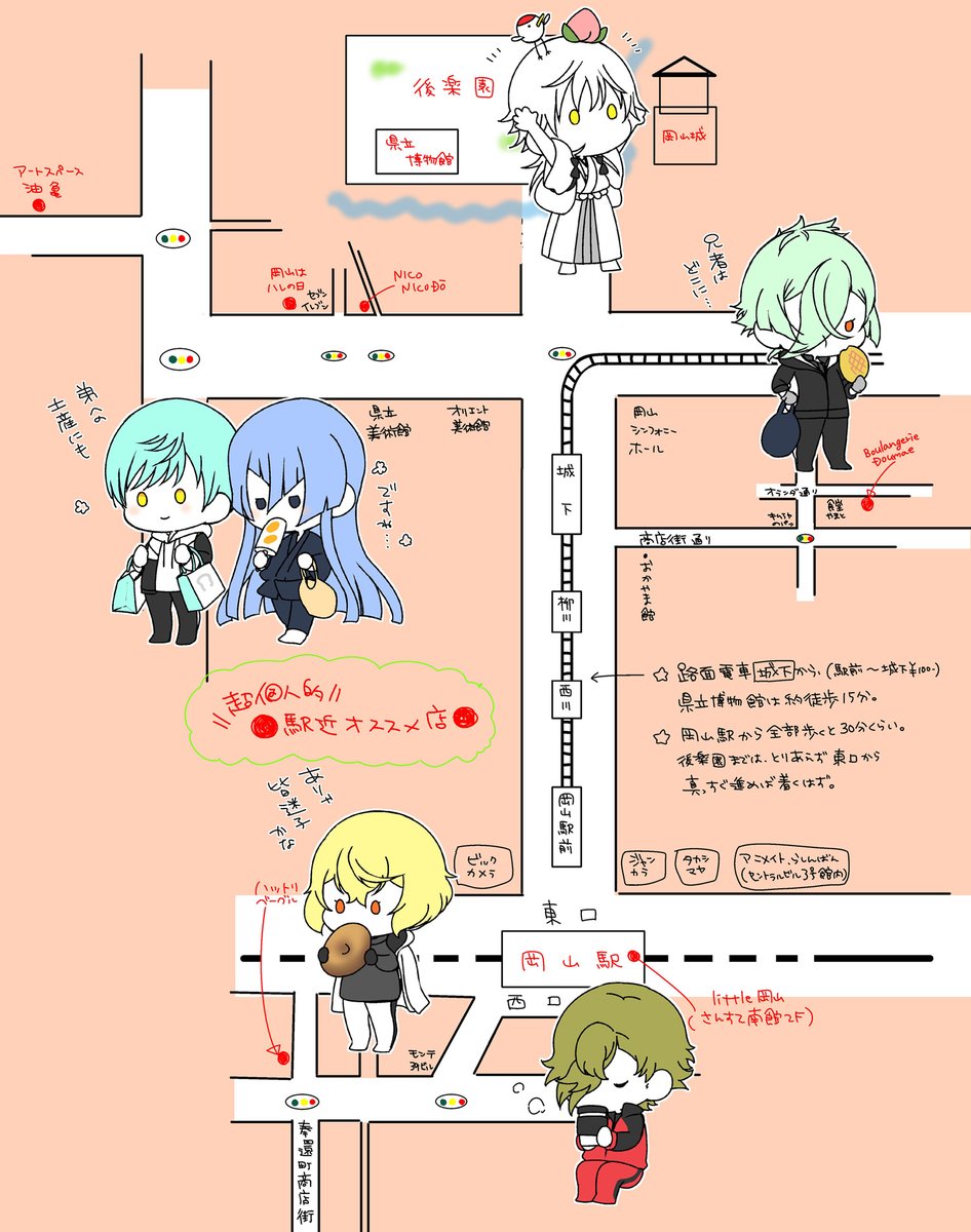 もうすぐさんちょうもうさんの展示が始まるしきっと岡山に来られる方が増えると期待して、個人的に好きな店をお勧めする!地図は省略しまくっているので、あまり参考にならないかも…もし気になるところがあれば店名を頼りに調べて行ってくださいね🍑岡山いいとこだよ~!☺️