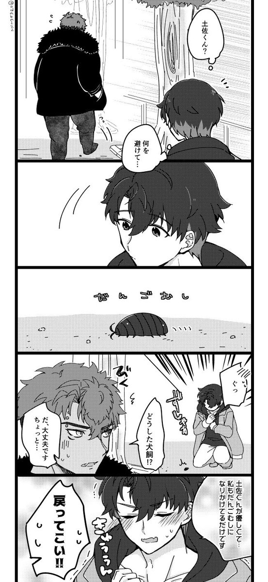 土佐君と犬飼さん。 土佐くん誕生日おめでとう~!🥳全然関係ないネタでも申し訳ない。大きなからだで優しいきみが大好き…🙏