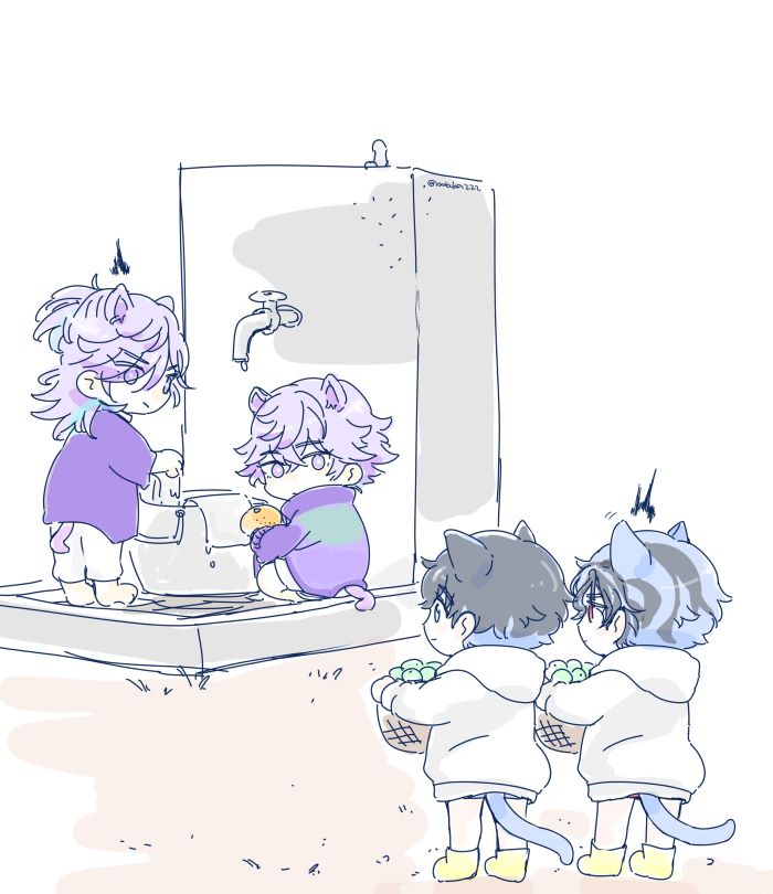 謎シチュのWぬこ。ふたごちゃんは短いかぎしっぽだったら可愛い。