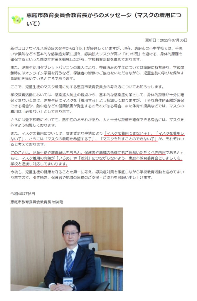 札幌市教委が全市立学校長に「マスク警察禁止」を通知! 10月21日