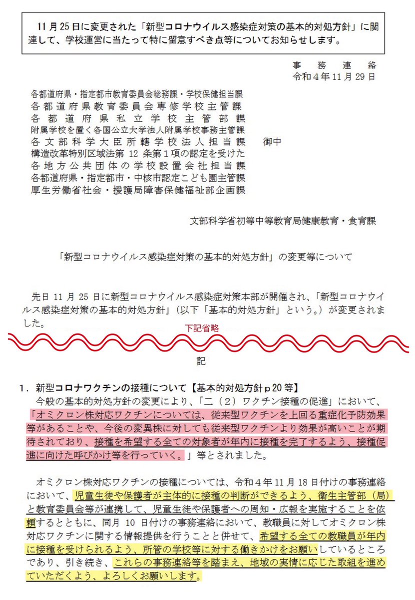 【拡散希望】黙食緩和を隠れ蓑に、園や学校現場から子どもたちにワクチン接種の圧力をかける姑息な手段に出た文科省に皆で断固抗議の電話を!
