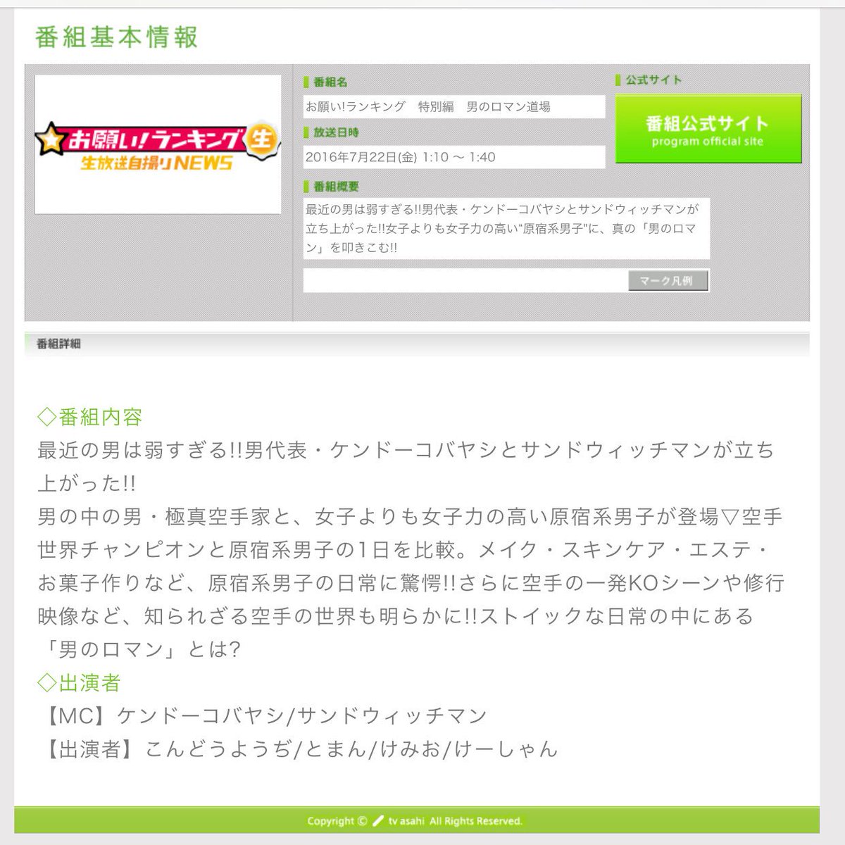 『お願い!ランキング 特別編 男のロマン道場』に出演します💋いつもより一層小さく見えるとおもいます!笑