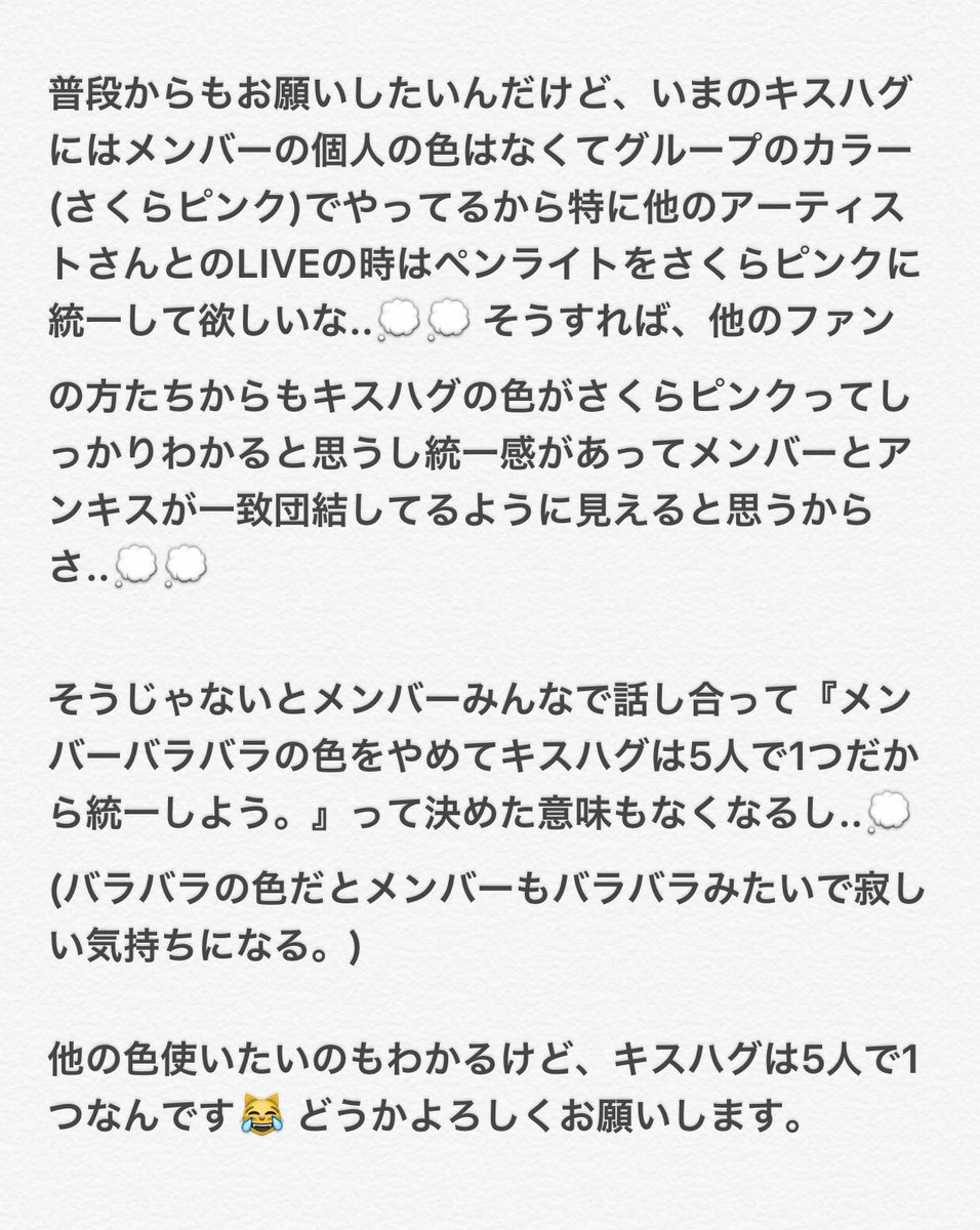 夜遅くにリーダーからの勝手なお願い🙏🏻💭 (メンバーともスタッフさんとも話しました。) #さくらピンク