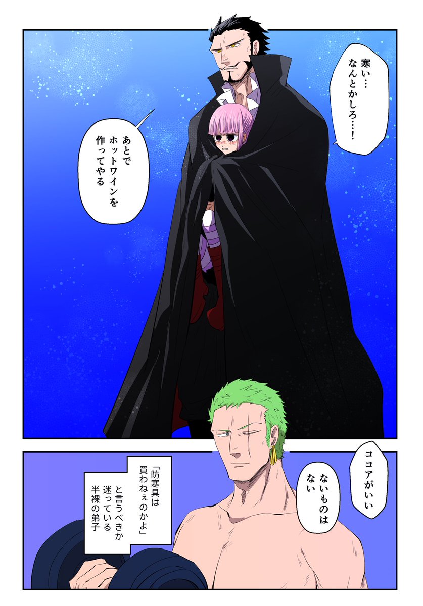 ミホペロ ミホークのコートで体温調節するペローナ