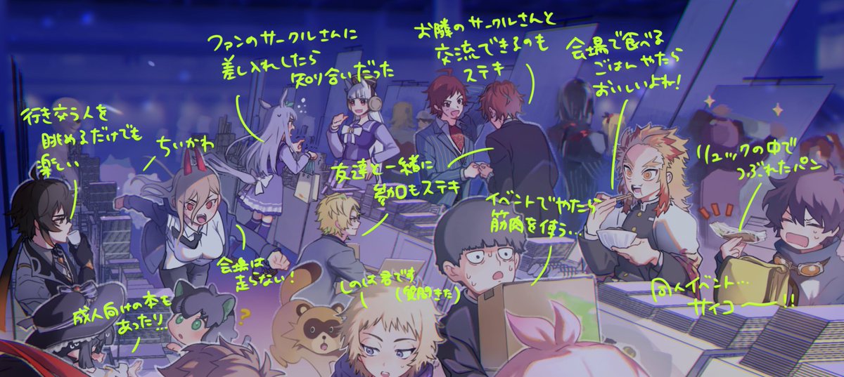 色んな作品を好きな人が賑やかに集まるあの雰囲気が出せたらな~と、好きな子たちを色々詰め込んで楽しく描きました! twitter.com/akaboo_gallery…