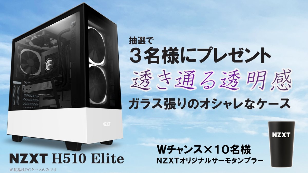 前面メッシュで良く冷えるPCケース「H510 Flow」を3名様に。さらに外れた方の中から10名様に「NZXTオリジナルサーモタンブラー」をプレゼント
