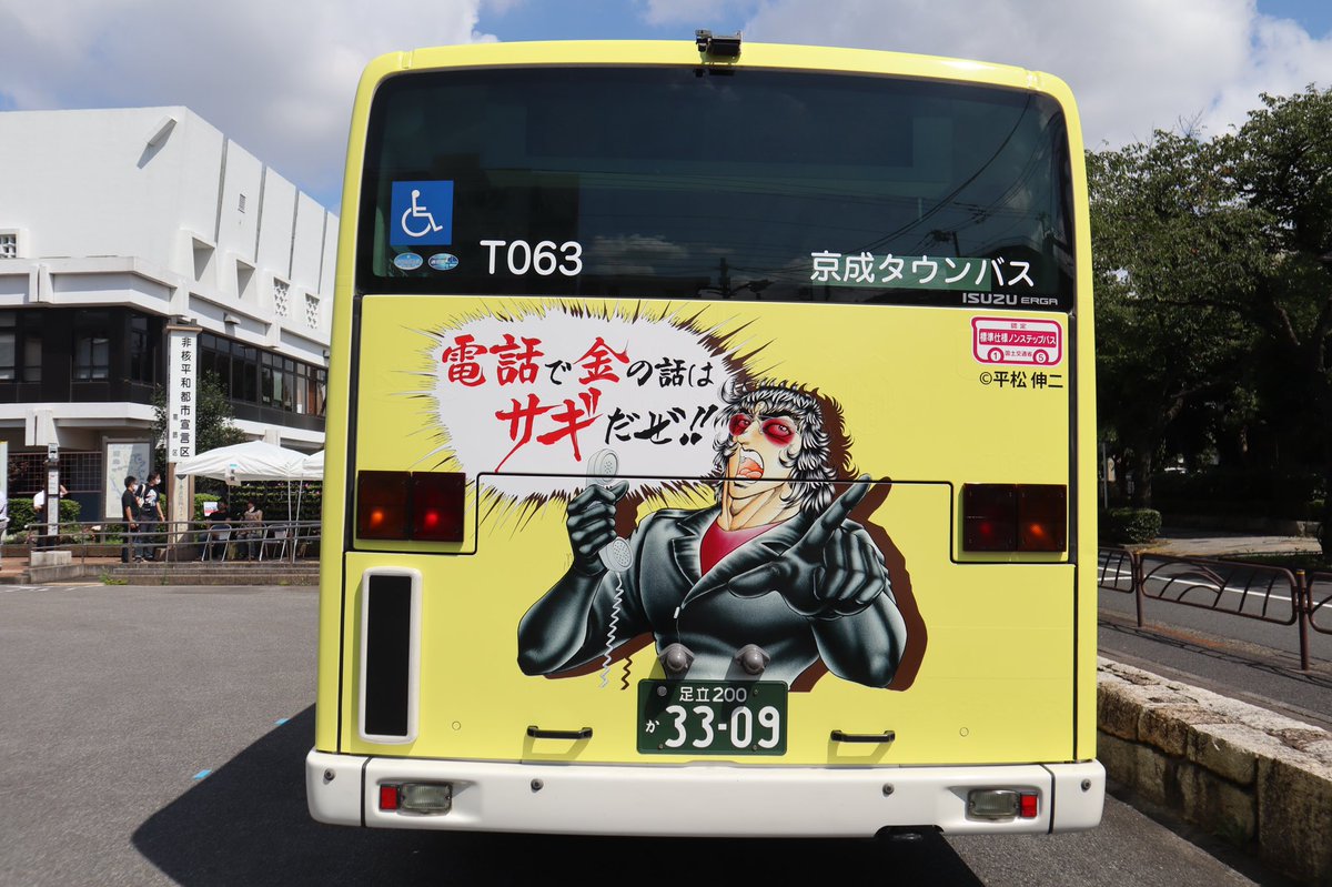 漫画家・平松伸二氏が描いたイラストが掲載されたバスが区内を走ります。