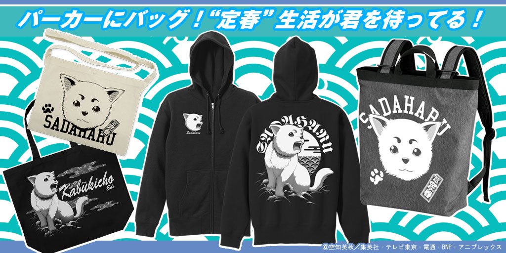 【商品】『銀魂』咆哮&かわいい“定春”が勢揃い!万事屋ファン興奮の“銀マーク”グッズも勢揃い!銀さんのいちご牛乳柄のパスケースやエリザベスのパーカーなど迷っちゃいそう!