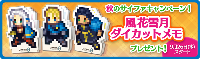 【キャンペーン】9月26日(木)より「秋のサイファキャンペーン!」を実施します。対象店舗にて、サイファのブースターパックを1ボックス(もしくは16パック)お買い上げごとに「風花雪月ダイカットメモ」を1個(全3種類)プレゼントします! #FEcipher fecipher.jp/campaign/memo_…
