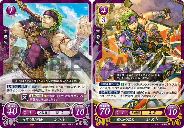 【カード紹介】どんなピンチに陥ろうとも、ニヤリと笑って勝機を掴む。ジストは、数多の戦場を渡り歩き、死線をくぐり抜けてきた、百戦錬磨の傭兵です。ジスト傭兵団を率いる彼は、経験豊かなリーダーとして、団員たちをまとめあげ、その剣に力と勇気を与えます!(Illust:士基 軽太) #FEcipher