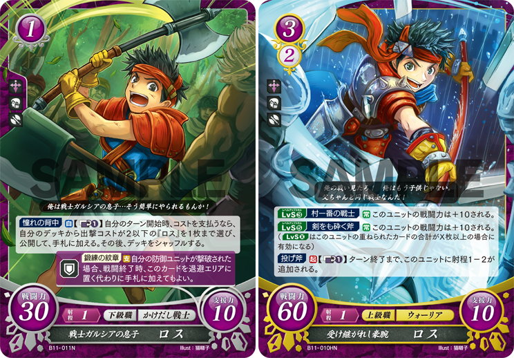 【カード紹介】少年は、早く大人になりたいと願うもの。辺境の村に住むロスの夢…それは、いつか尊敬する父ガルシアの様に、勇猛で強い男になること! まだまだかけだしの彼ですが、戦いの中で経験を積み、やがて一人前の戦士へと成長するのです!(Illust:猫囃子) #FEcipher