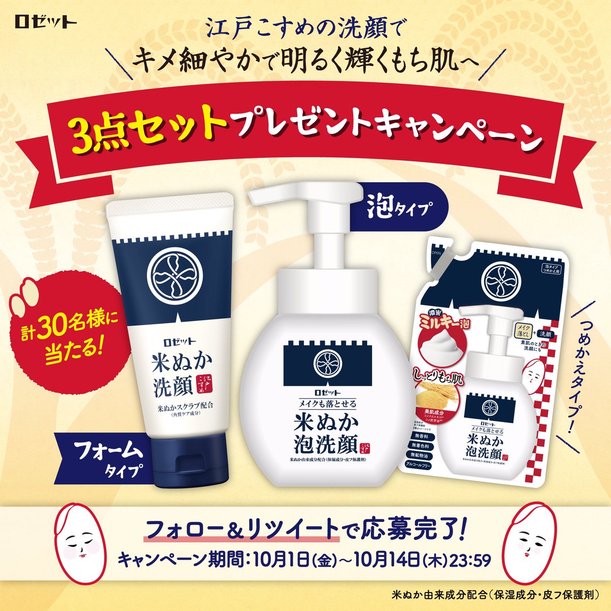 ロゼット公式Twitterをフォロー&対象ツイートをリツイートで計30名様に江戸こすめ3点セットプレゼント🎁🌟