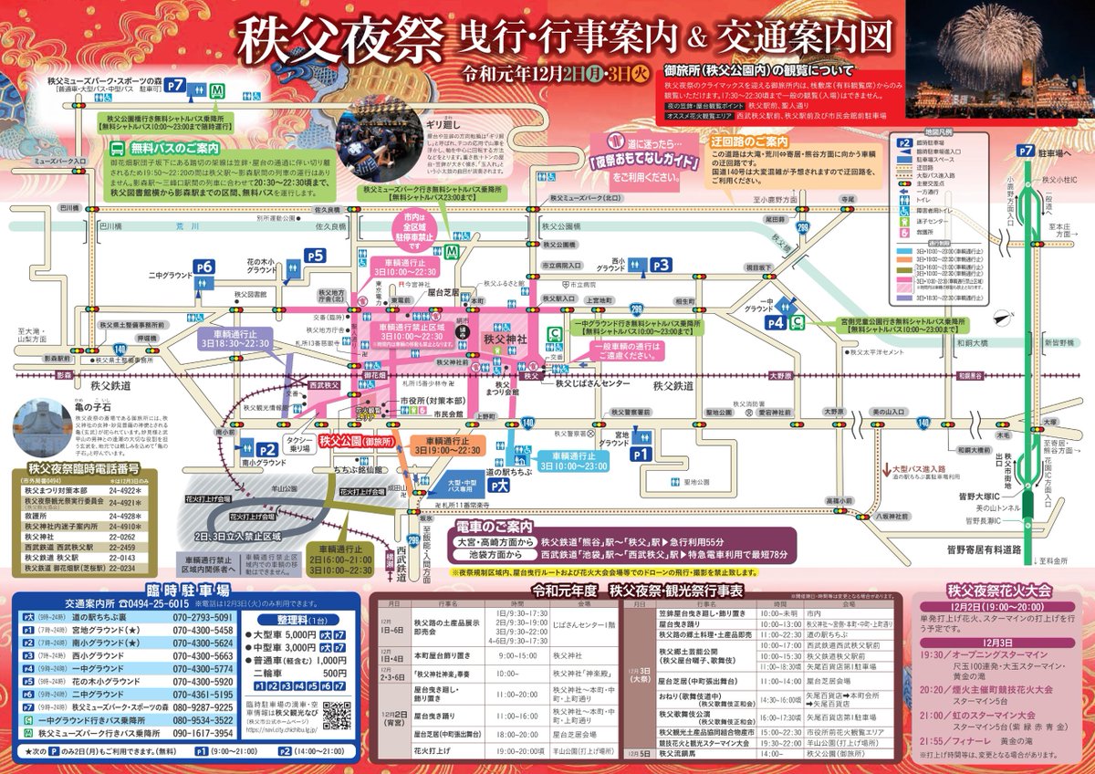 12月2日・3日と秩父神社例祭 秩父夜祭の山車曳行等に伴い、秩父市内で交通規制が実施されます