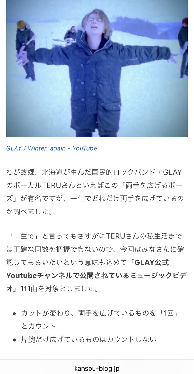 GLAYのTERUさんは一生で何回両手を広げるのか - kansou kansou-blog.jp/entry/2018/01/…