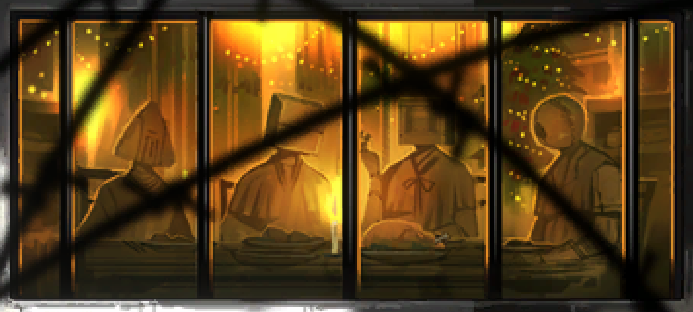 囚人初期EGOの窓は本人の罪/トラウマ説で画像を確認。気になったやつをいくつか。一枚目ムルソー、帽子を被った人々の奥、釘だらけの箱があるように見える。二枚目シンクレア、義体とクリスマスだが家族にしては一人多い。三枚目イサン、鏡の部屋。四枚目ファウスト、これは?#リンバス藤日誌