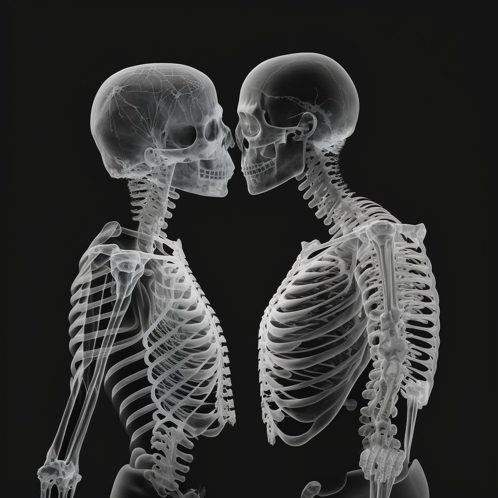 x-ray photography of a couple about to kiss