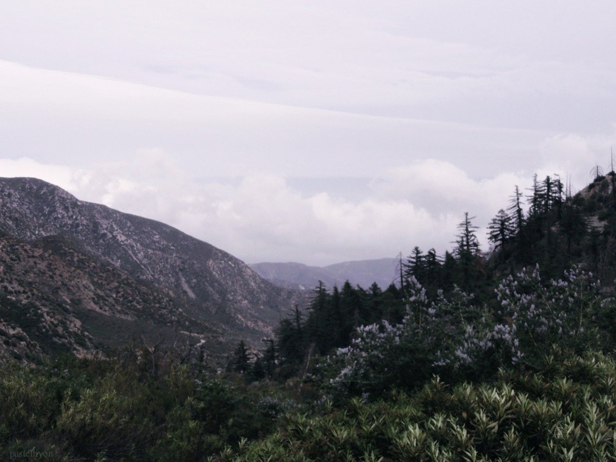 mountains against the pale sky.