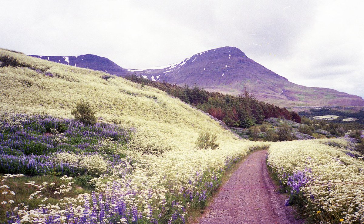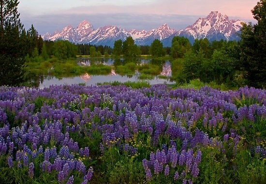 the contrast of sunset lupines.