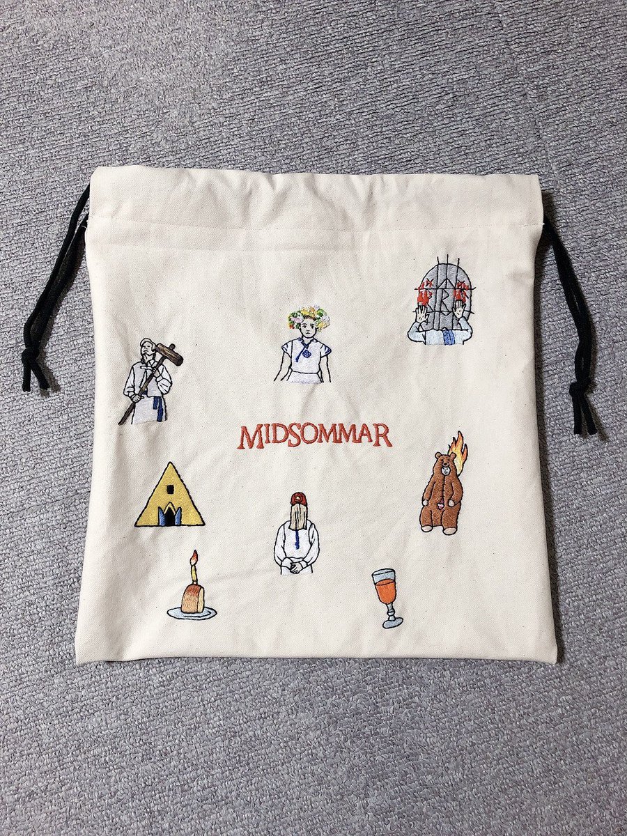 1ヶ月半かけてようやく完成したミッドサマー巾着です🧵🐻🌼⛺️