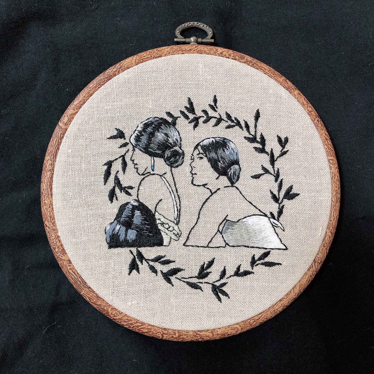 大好きなパク・チャヌクの映画「お嬢さん」の刺繍完成🧵今回白黒がテーマでお気に入り。