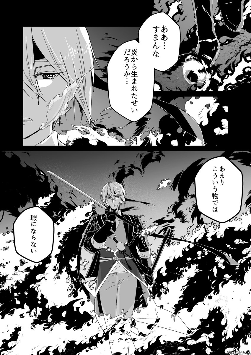 この綺伝刀ステ本丸の山姥切長義の何が良いって”自分の写しだから”山姥切国広が騙られたことが不愉快なんじゃなくて、自分の本丸で、刃もちて語り合った”あの自本丸の山姥切国広が”騙られたことに対してめちゃめちゃ怒ってて、更にその後出てくる台詞が「俺は本歌”山姥切”だ」だから
