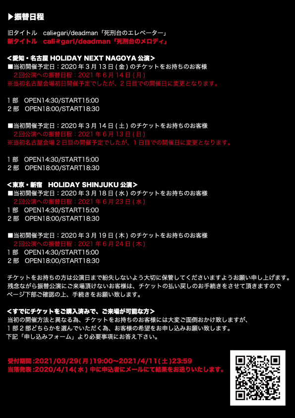 【新宿/名古屋公演開催方法決定、タイトル変更のお知らせ】