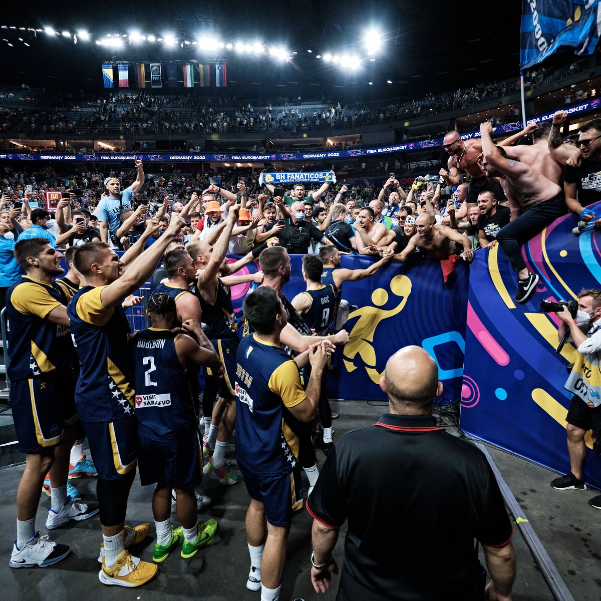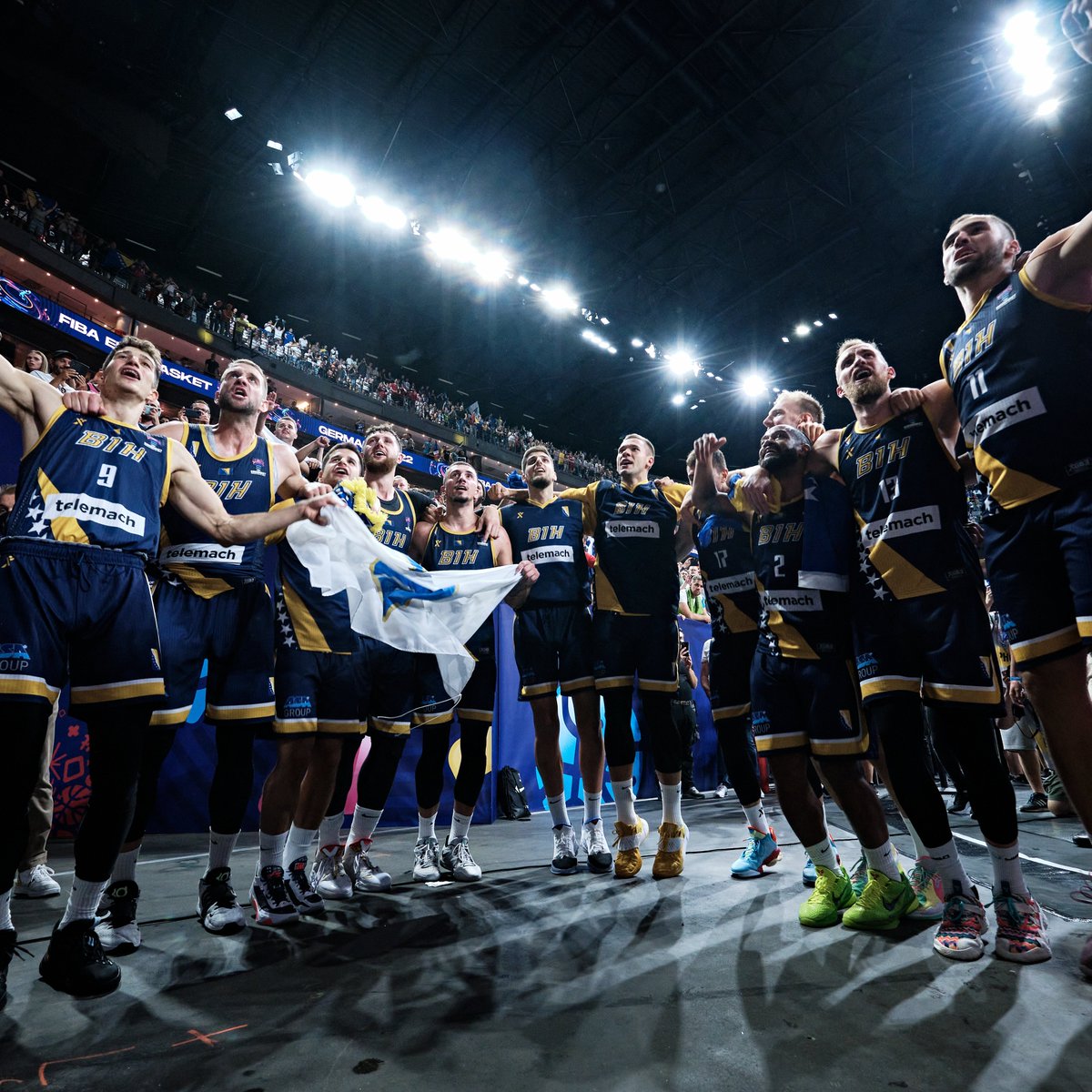 🇧🇦 Bosnia are celebrating their well-deserved #EuroBasket 𝘽𝘼𝙅𝙍𝘼𝙈 after the win over defending champions 🥳