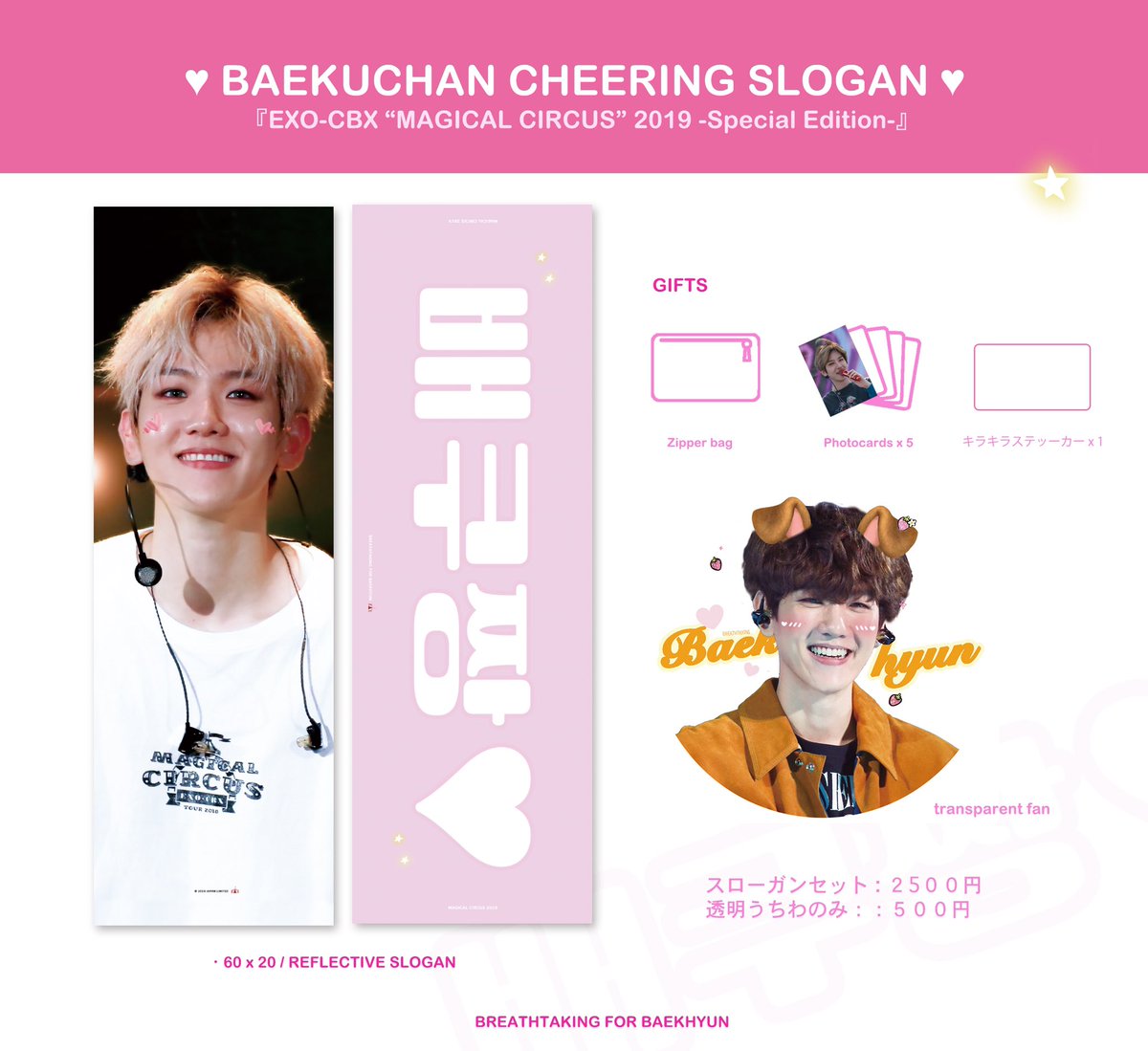 #백현 2019 CBXツアーでベクちゃんの応援のため、今回透明うちわと反射スローガンセットを作りました💕皆様当日スムーズに受け取れるように今回も事前入金になります。よくご検討された上でご予約お願いします❣️たくさん関心をよろしくお願いします。