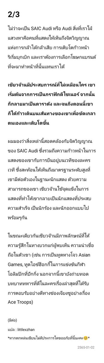 “สิ่งที่เห็นจากตัวเซียวจ้านคือประสบการณ์และความตระหนักรู้ในตนเอง เริ่มต้นจากการเป็นกราฟิกดีไซเนอร์มาเปนดาราดัง จนตอนนี้เติบโตขึ้น”#xiaozhan