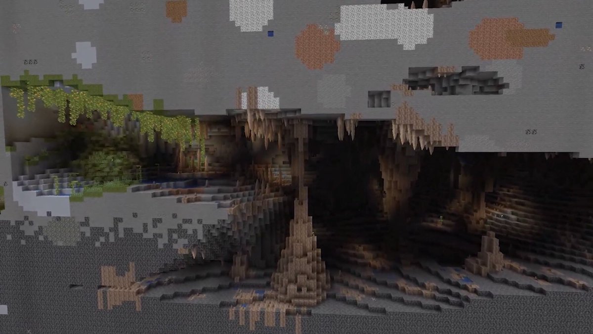 Minecraft 1.18の新地形で見つかった巨大な鍾乳洞とのことです。 twitter.com/the___stick/st…