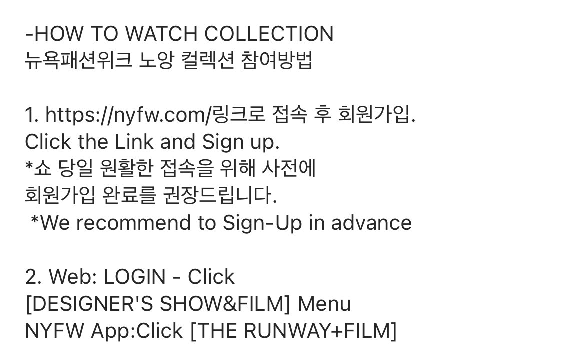 nyfw.com링크로 접속 후 회원가입.