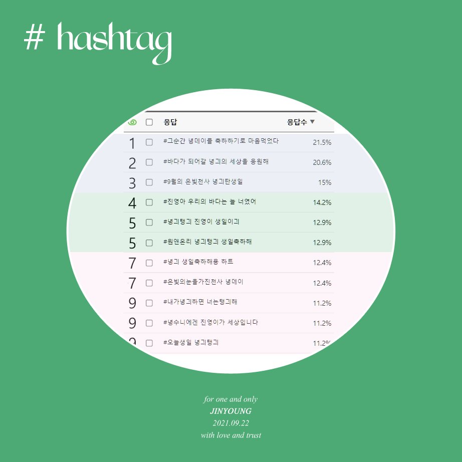 Just For Jinyoung에서 모집해주신 해시태그를 전달 받아 한국어 해시태그 투표를 진행합니다😄