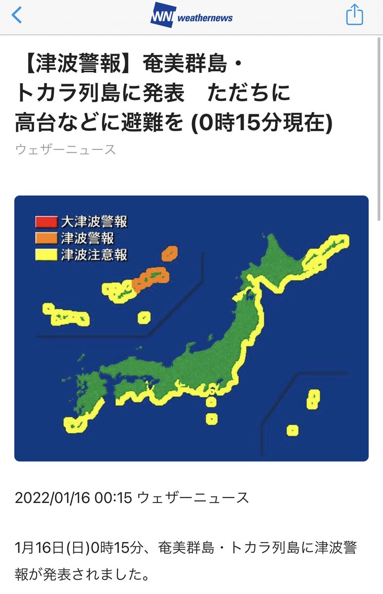 0:15 น. วันนี้ (16/1) ที่ญี่ปุ่นเตือนภัยสึนามิในฝั่งตะวันออกของประเทศ อันเนื่องมาจากการระเบิดของภูเขาไฟใต้ทะเลใกล้หมู่เกาะตองกาช่วงบ่ายของวันที่15 ที่ผ่านมา