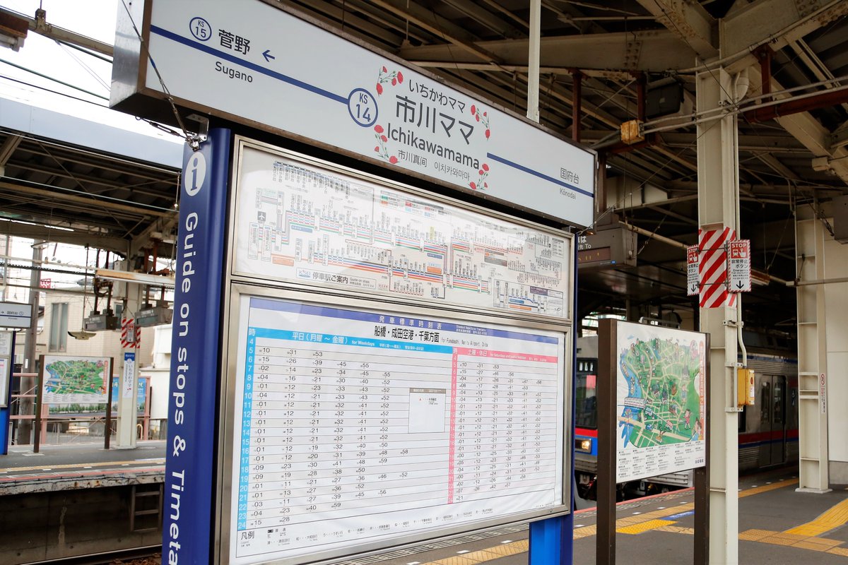 母の日にちなみ、12日までの期間限定で「市川真間」駅が「市川ママ」駅に駅名看板が変更されています。