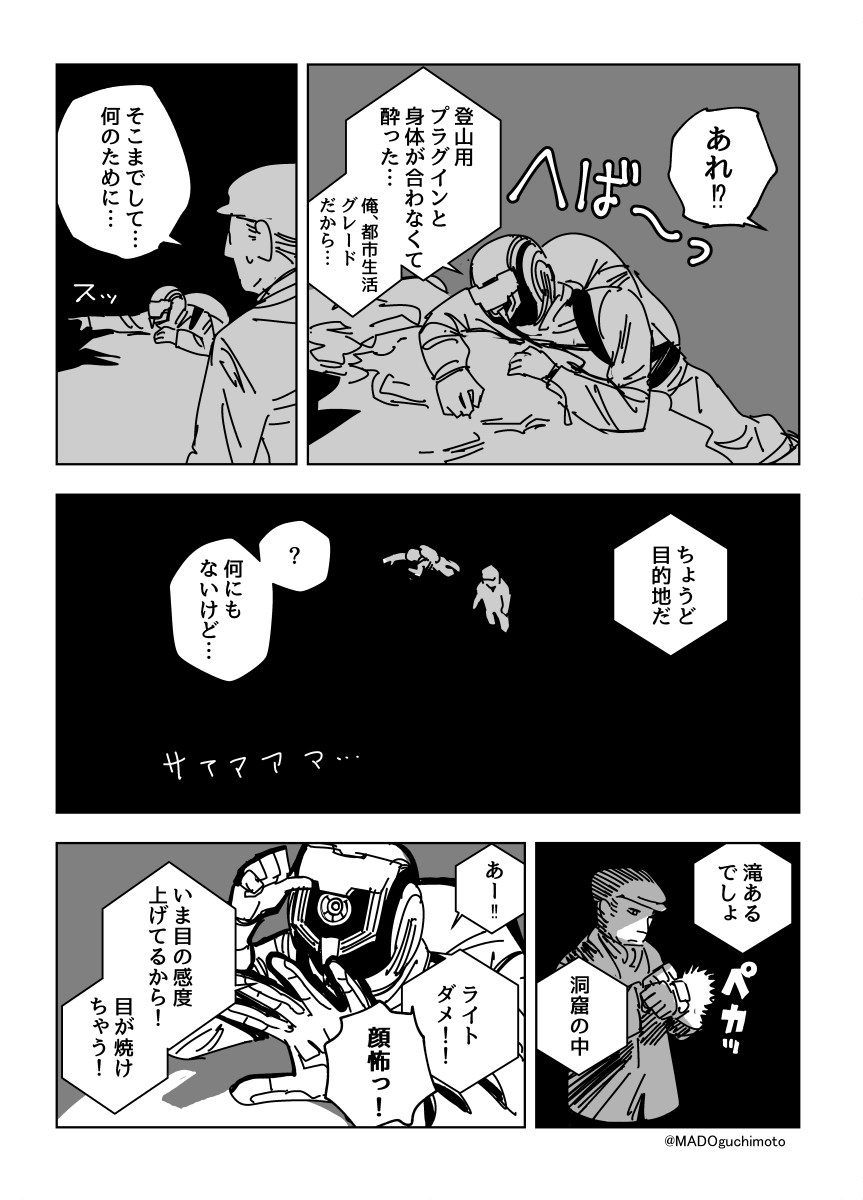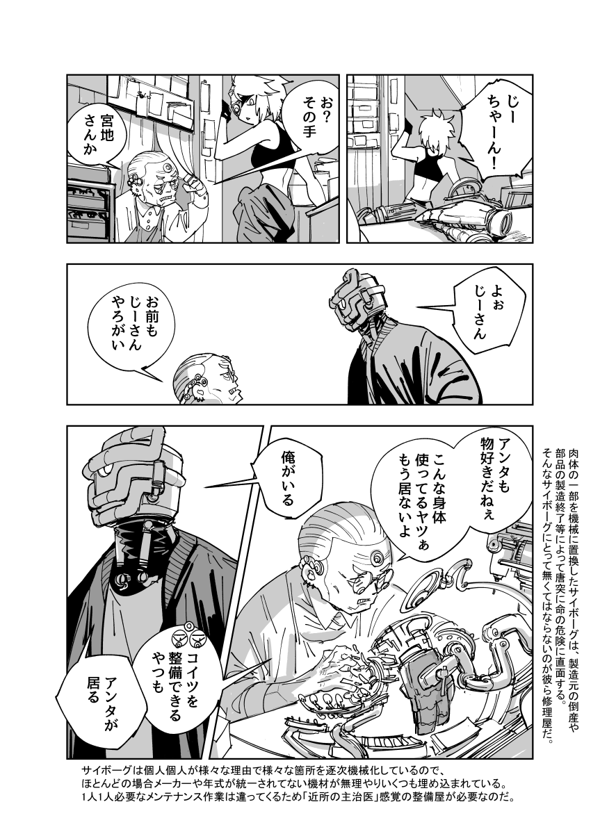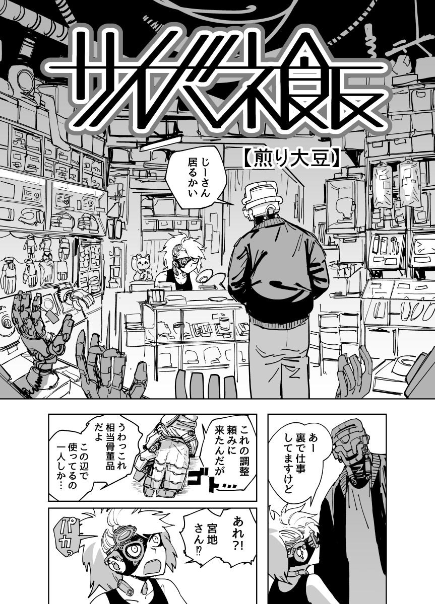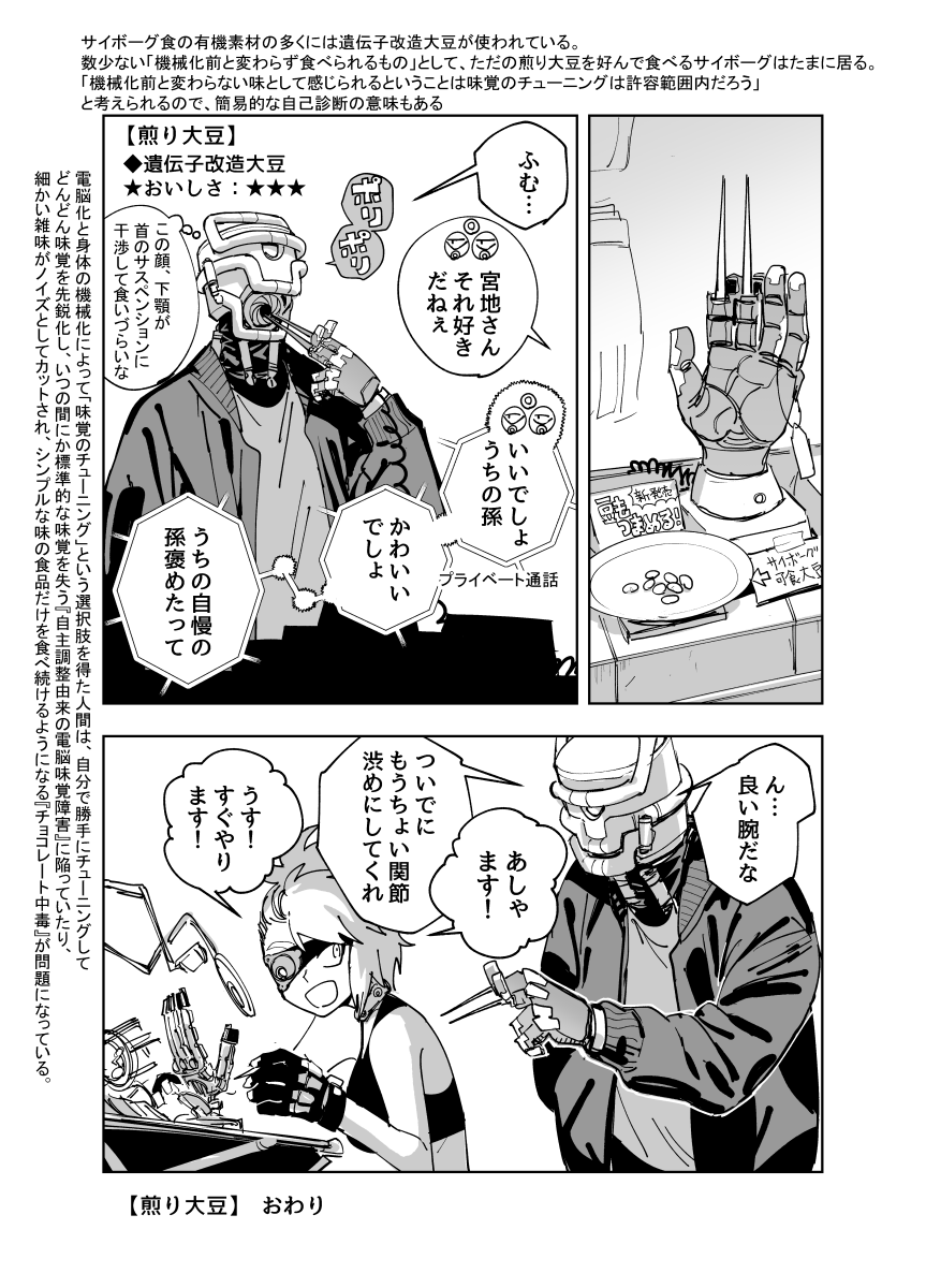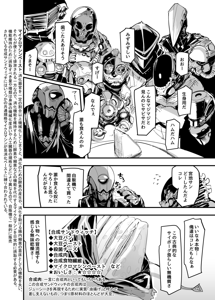 サイボーグおじさんたちがご飯を食べるだけの漫画、まとめ本がAmazonにあります。0円で読めます。