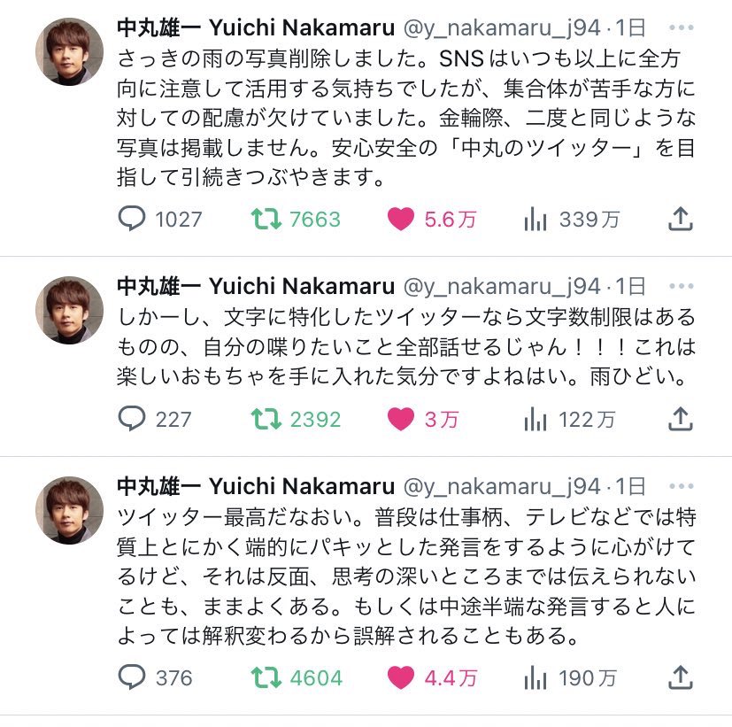 マネージャーさん亀梨くんが初めてインスタライブやる時も自宅まで来て見守ってくれてたし、上田くんがド深夜にインスタライブやる時も本当は0時過ぎたらダメなのに見守ってくれてて、中丸くんがスペースやる時ちゃんと合ってるか不安がる中丸くんに先手でメールで「合ってます」と送る…親のようだ。