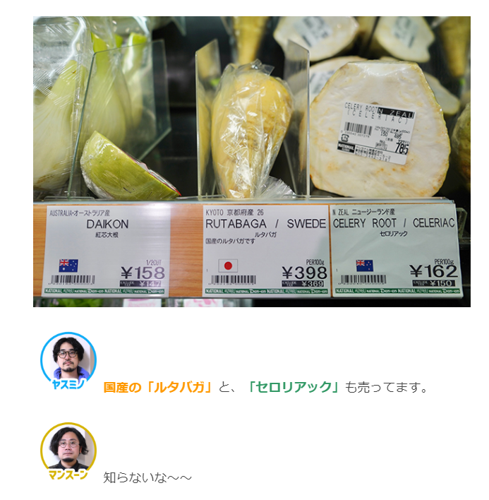 珍しい食材がたくさん売っているスーパー「ナショナル麻布」さんにて、知らない物をたくさん買って食べてみる記事です。カブのような芋のようなルタバガって野菜、めちゃくちゃ美味しい。