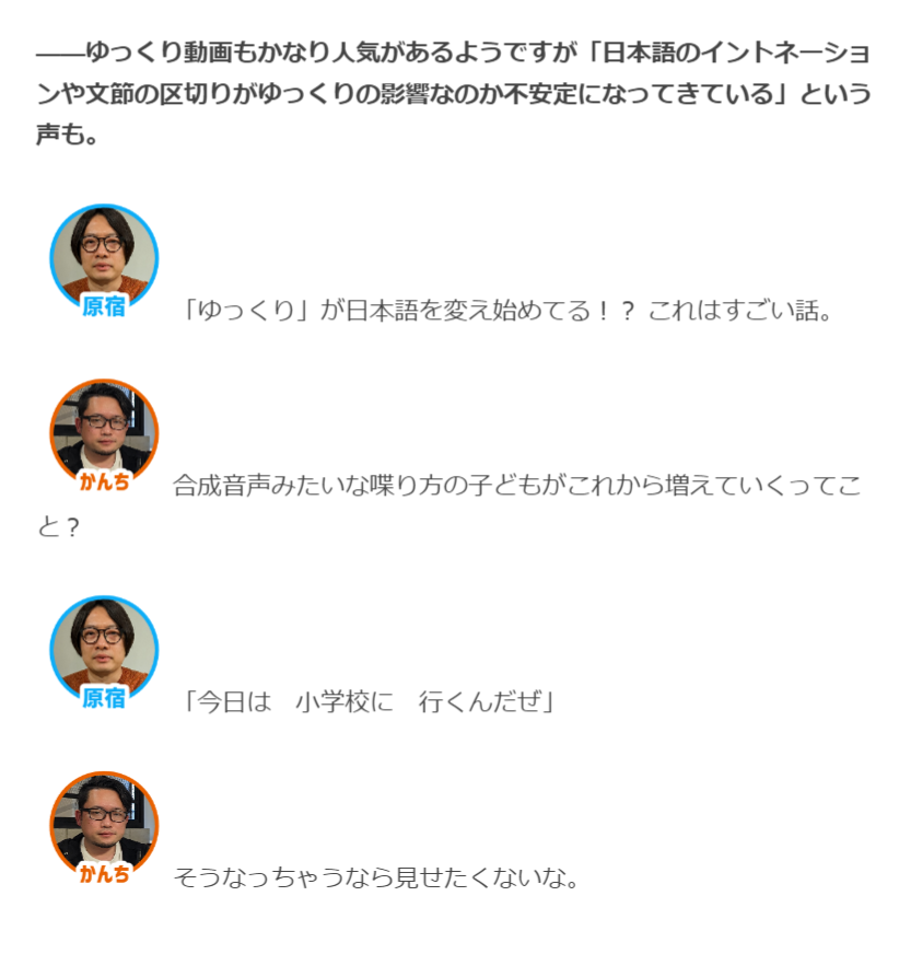 Googleの人が自分の子どもにはYoTubeを見せてないという話を聞いたり、「ゆっくり」が日本語のイントネーションを変え始めているという話を聞いたりで不安です。頑張っていきましょう。