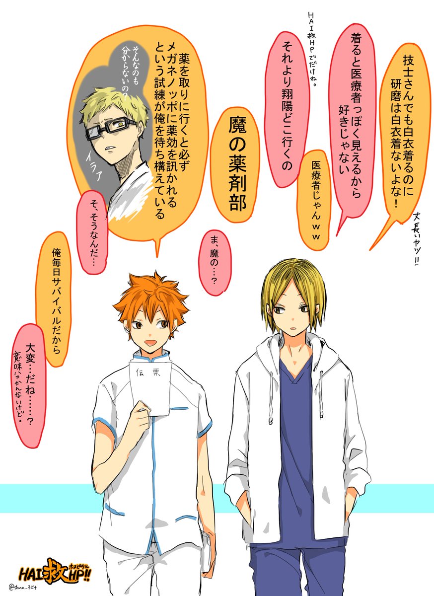 3/24はありがとうございました!お祝いのお言葉やイラスト描いてくださった方もいて最高のお誕生日でした…!一人一人に返信できなくて本当にすみません…………放射線技師研磨と福永置いときます。