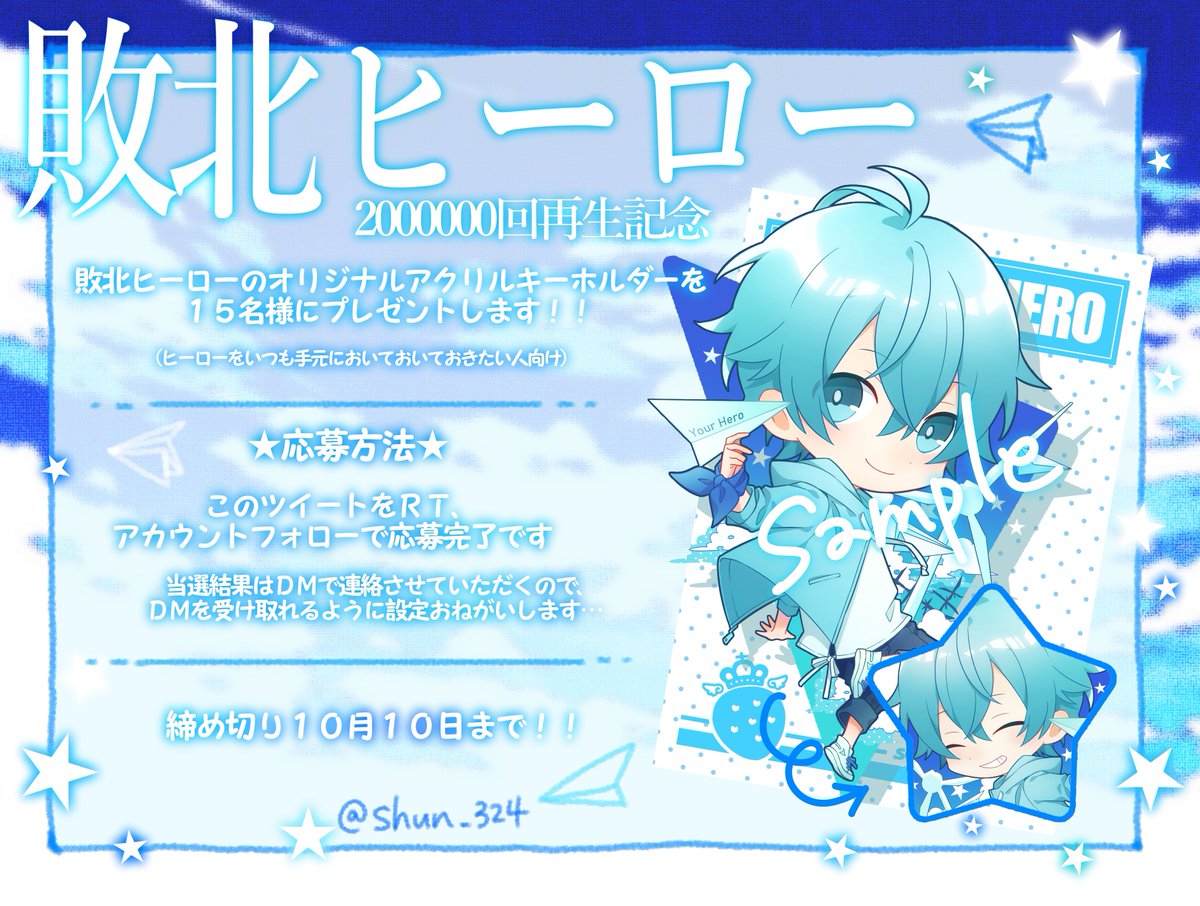 いつの間にか1万人……😭✨敗北ヒーローっょぃ………。こんなに多くの方に参加してもらって、15人はちょっとな…💦ってなったのでいつになるかは分かりませんが2次募集みたいな形で当選人数増やしてまたやりますね……。自分的にももっとたくさんの方にこのちっちゃいヒーロー渡したいです……😭✨✨