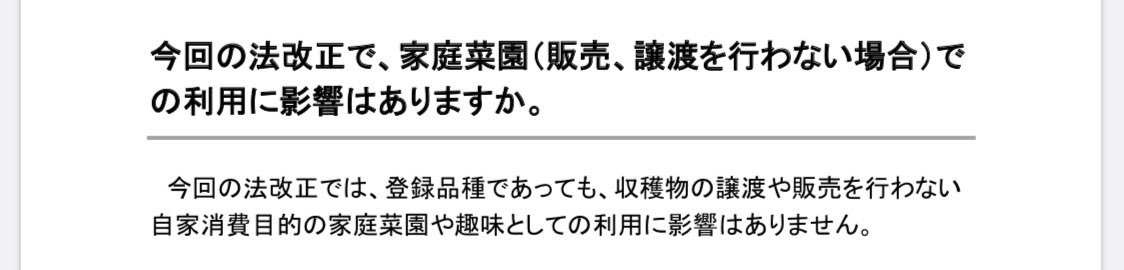 在来種はもちろん、一年以上流通している品種は品種登録できません。それらの品種について農業者が新たに許諾を受ける必要も許諾料を払う必要もありません(農林水産省)。各県の登録品種確認はコチラから→twitter.com/genki18895312/…