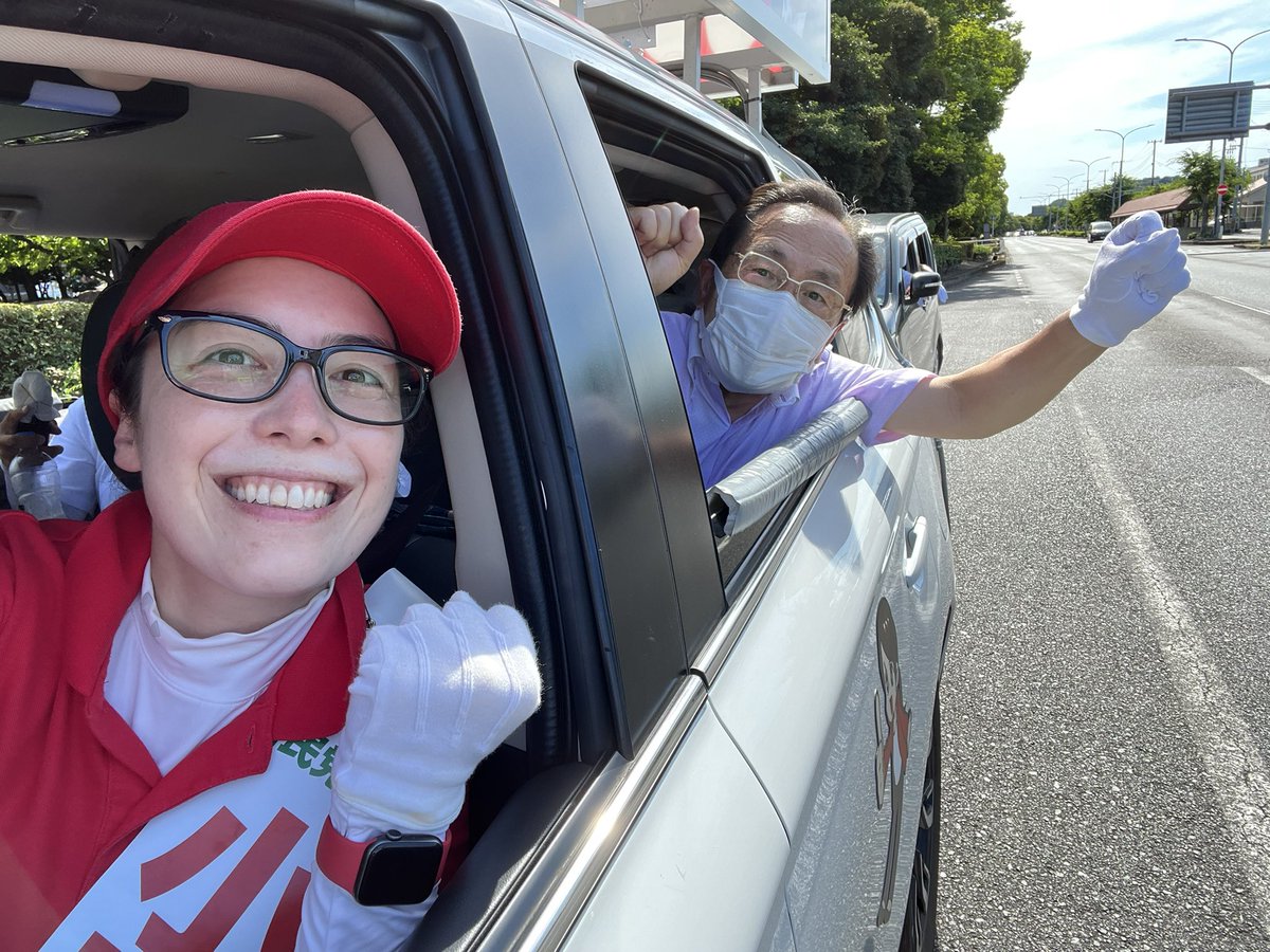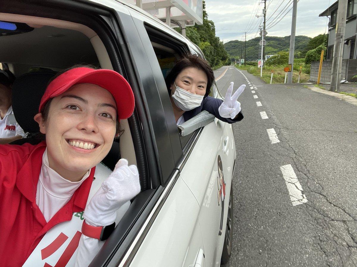 選挙戦12日目。本日の夕方は福島恭子県議@FukushimaKyoko が選挙カーに同乗下さいました。力強い応援に感謝です!この後高市早苗政調会長を応援弁士にお迎えし、備前市民センターで個人演説会を行います!