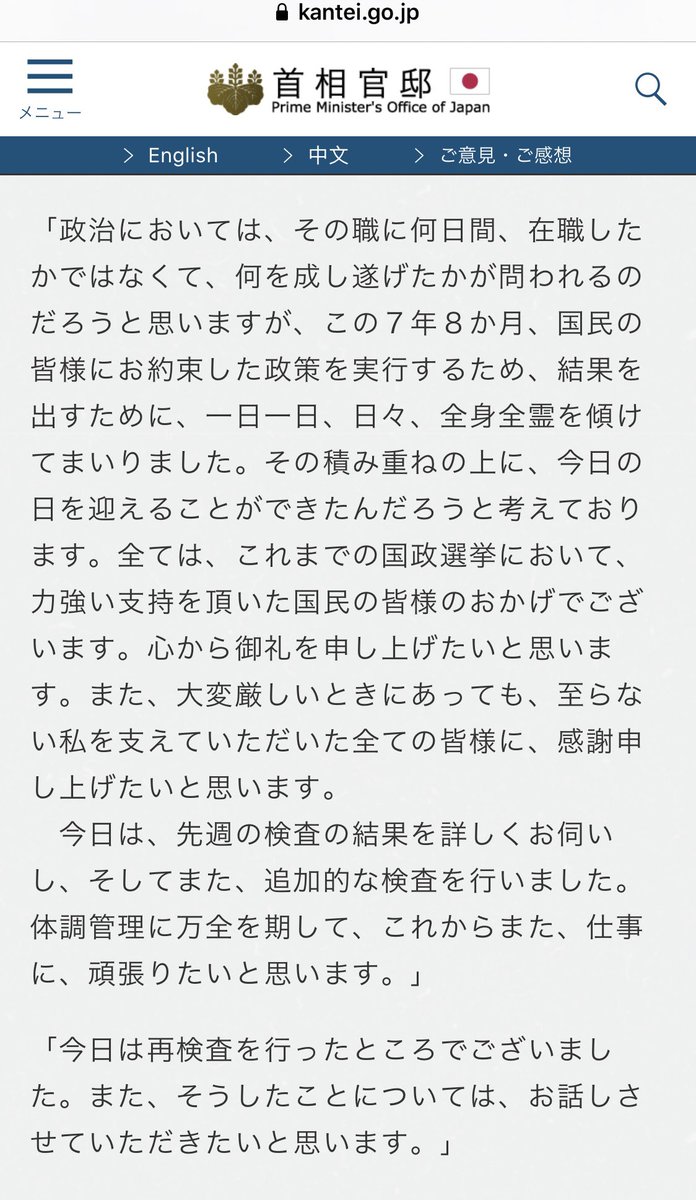 連日飽きもせず、健康不安健康不安と煽る記事はもう沢山です。難病の持病を抱えながら、それでも日本のため覚悟を決めて総理に再登板され力を尽くしていらっしゃる総理を、我々は信じてお支えするだけです。 headlines.yahoo.co.jp/hl?a=20200824-…