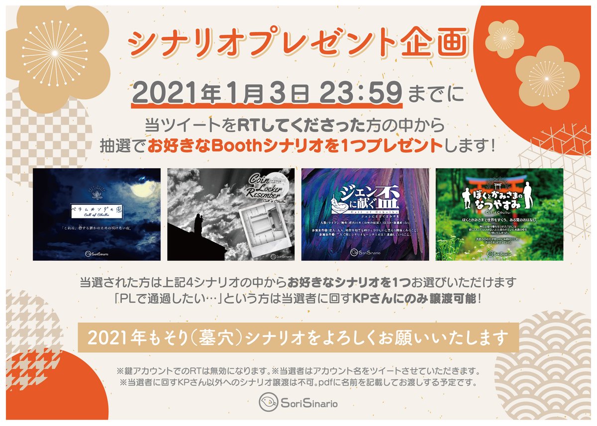 CoC六版、大正日本が舞台です。現代探索者の先祖、転生前の設定がある探索者だとより楽しいです!