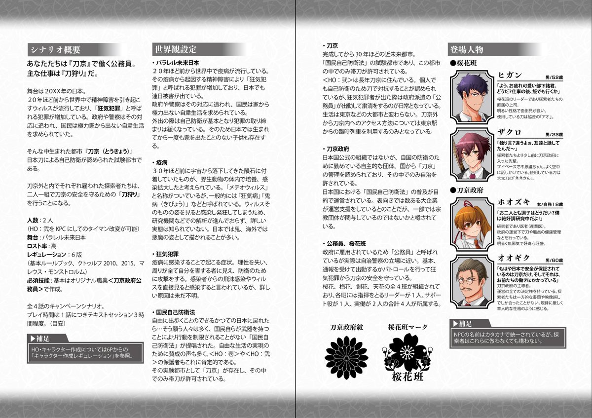 🌸CoC6版 2PLシナリオ「刀狂双乱」🌸